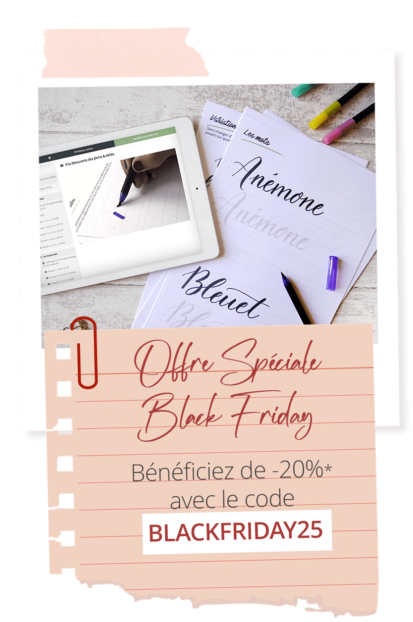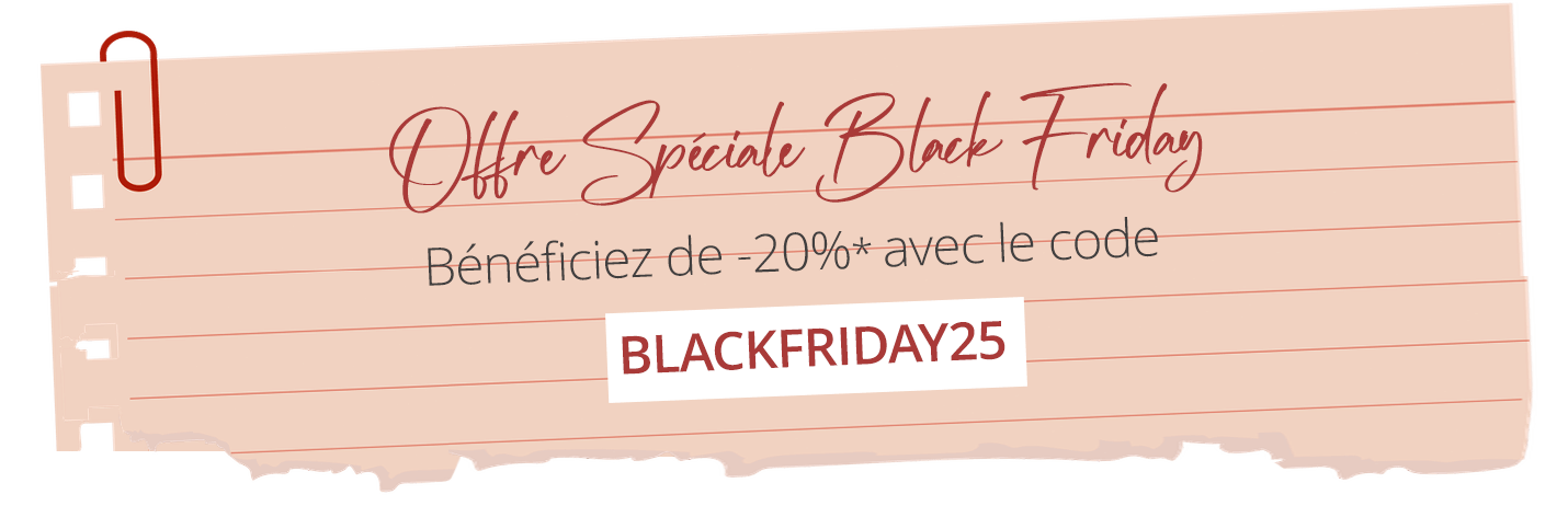 *Offre valable sur l'ensemble des cours en ligne, packs de cours et bons cadeaux proposés sur mon site du mardi 25 novembre au lundi 1er décembre minuit en indiquant le code BLACKFRIDAY25 au moment du paiement.