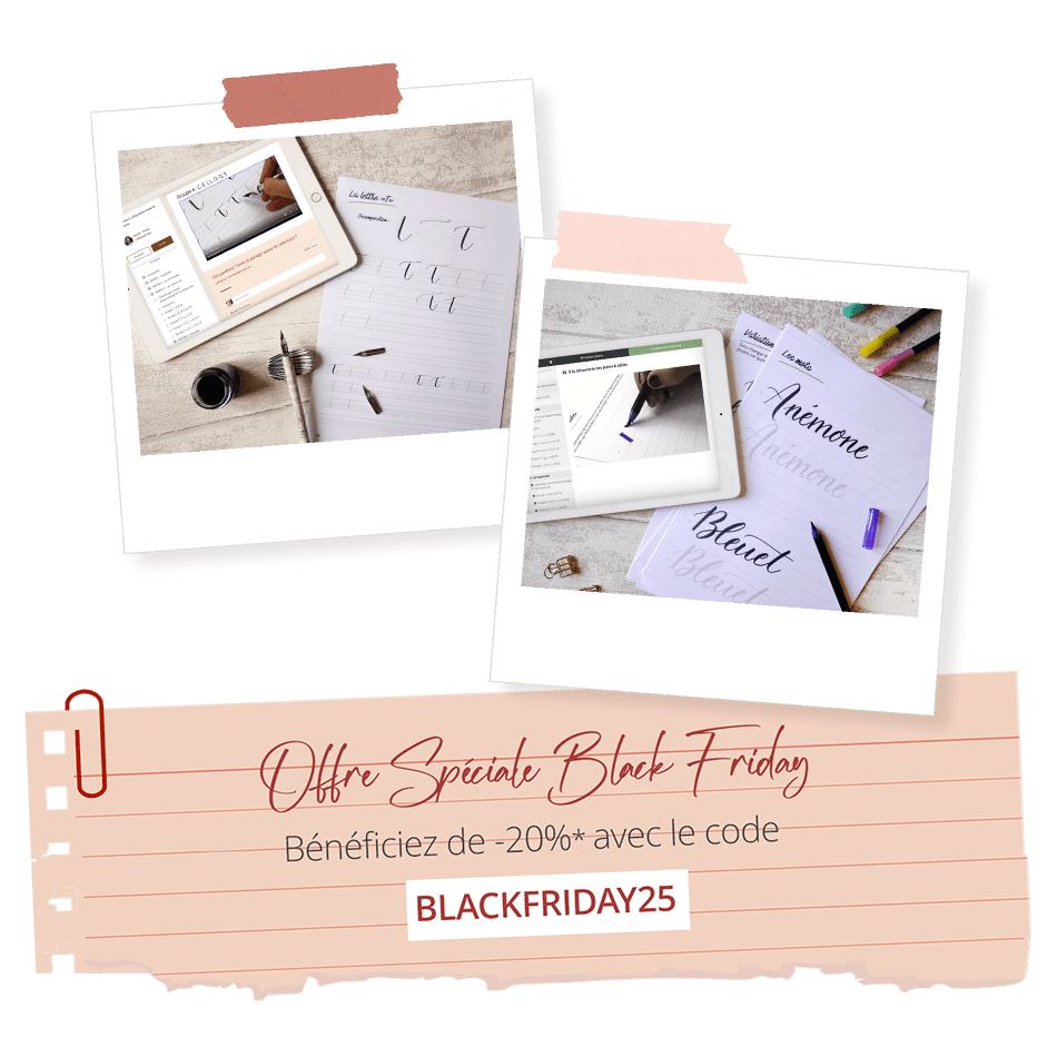 *Offre valable sur l'ensemble des cours en ligne, packs de cours et bons cadeaux proposés sur mon site du mardi 25 novembre au lundi 1er décembre minuit en indiquant le code BLACKFRIDAY25 au moment du paiement.